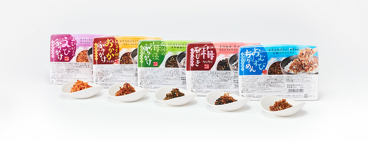 ごはんがすすむソフトふりかけとお酒がすすむ濃厚おつまみ。海の幸で食卓を彩ります。