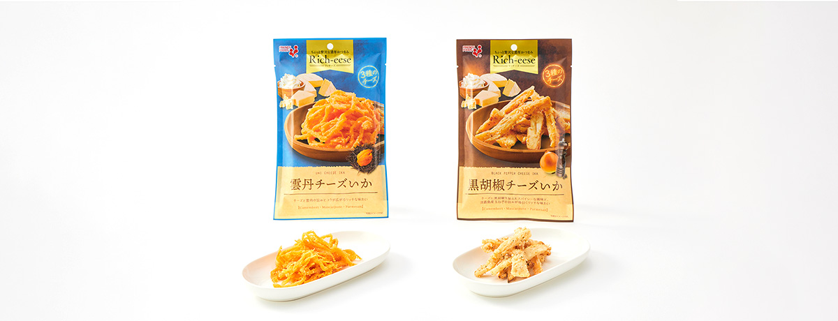 さきいか(いか(ペルー産)、砂糖、乳糖、食塩、醸造酢)、プロセスチーズ、辛子明太子、ナチュラルチーズ、還元水あめ、かつお節エキス、発酵調味料、唐辛子/加工でん粉、ソルビトール、調味料(アミノ酸等)、酒精、乳化剤、酸味料、リン酸塩(Na)、保存料(ソルビン酸K)、pH調整剤、甘味料(ステビア、カンゾウ)、安定剤(増粘多糖類)、酸化防止剤(ビタミンC)、ナイアシン、酵素、発色剤(亜硝酸Na) |
